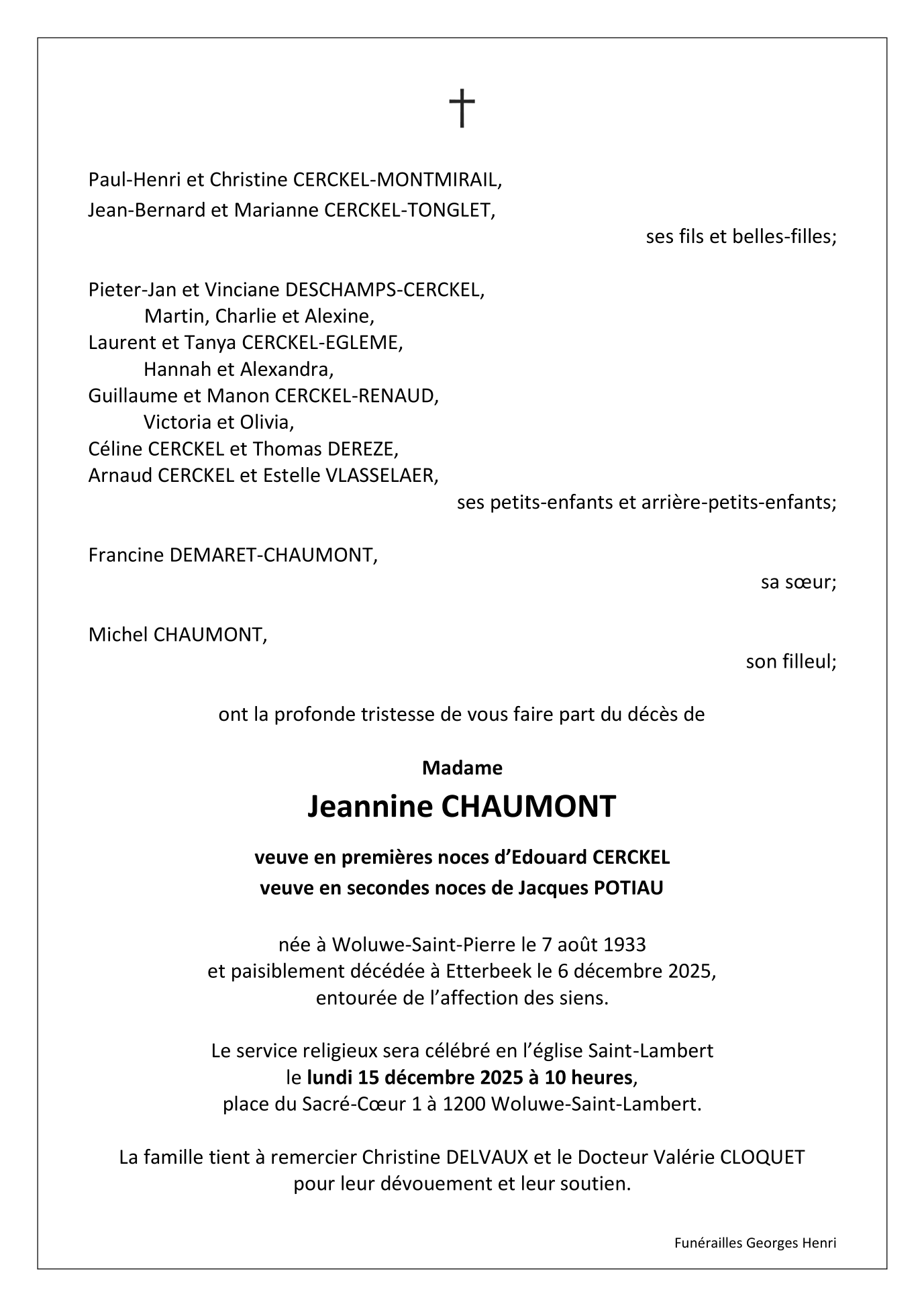 Décédée à Etterbeek (1040) le samedi 6 décembre 2025 à l'âge de 92 ans